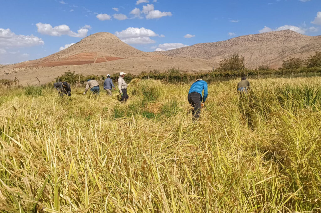 Batman’ın Gercüş ilçesine bağlı Akyar (Mervaniye) köyünde çiftçiler, “geleneksel yöntemlerle çeltik hasadına” başladı.
