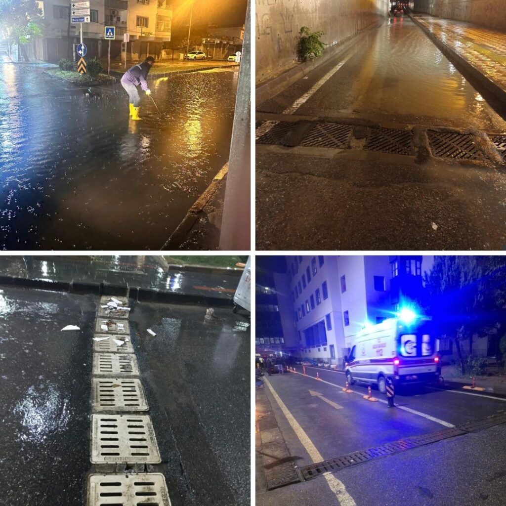 Mevsimin ilk ve şiddetli yağışları ile il geneli ve özellikle 6 kritik bölgede yaprak, çöp ve atık kaynaklı tıkanmaların artırdığı su birikimleri, ilgili birimlerin koordineli çalışmasıyla giderilmiş; kent genelinde şiddetli yağışın oluşturduğu etkiler azaltılmıştır. Yağmurun oluşturduğu olumsuz etkilerin; giderilmesi için ilimiz genelindeki çalışmalar kesintisiz şekilde devam ettirilmektedir.” İfadelerine yer verildi.