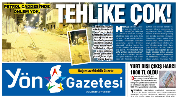 Daha önce gazetemizde “Petrol Caddesi’nde Önlem Yok, Tehlike Çok!” başlığıyla gündeme getirdiğimiz haberin ardından Batman Belediyesi harekete geçti.