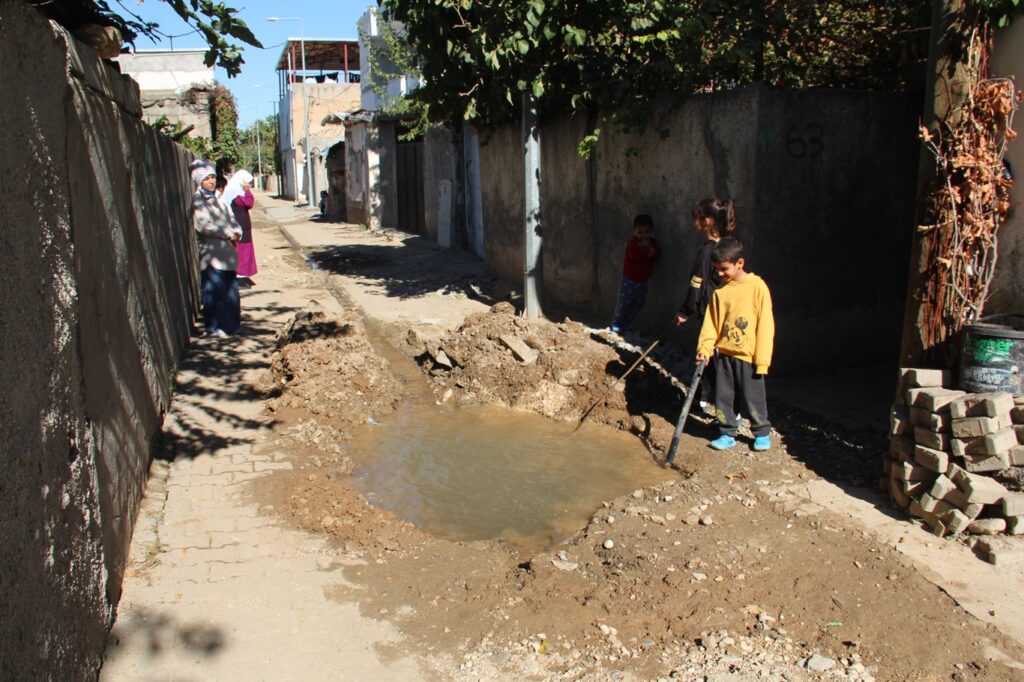 Batman’da doğal gaz çalışmaları sırasında patlayan su borusunun onarılmaması nedeniyle mağdur olduklarını belirten mahalle sakinleri, yetkililerden çözüm talep etti. Mahallede haftalardır süren su kesintisi ve bozuk yollar, hem günlük yaşamı hem de çocukların güvenliğini tehdit ediyor.