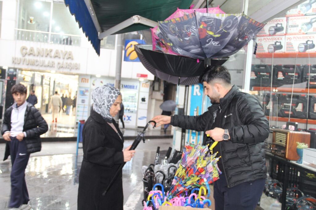 Şemsiye satıcısı Bilal Taş, yağmurların bereket getirdiğini söyleyerek satışların yükseldiğini belirtti: