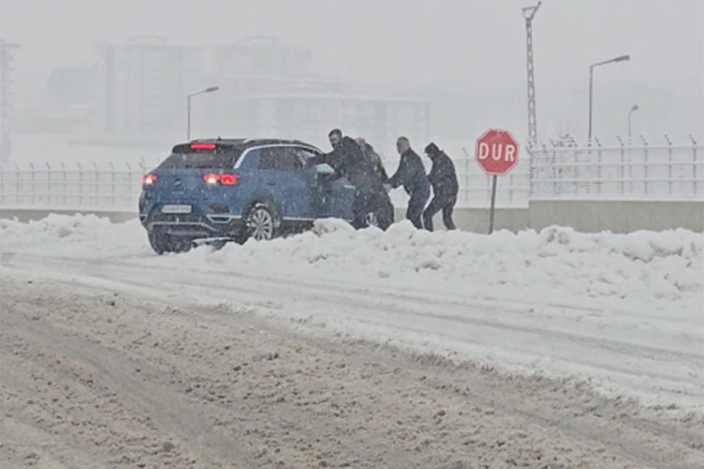 Yoğun kar ve buzlanma nedeniyle çok sayıda araç yolda mahsur kalırken, kimi araçlar ise ilerlemekte güçlük çekiyor.
