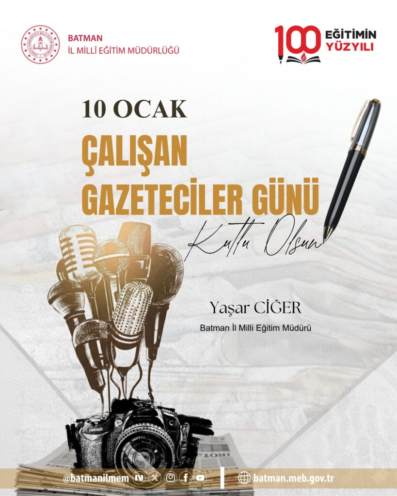 Batman İl Milli Eğitim Müdürlüğü, 10 Ocak Çalışan Gazeteciler Günü dolayısıyla bir mesaj yayımladı.