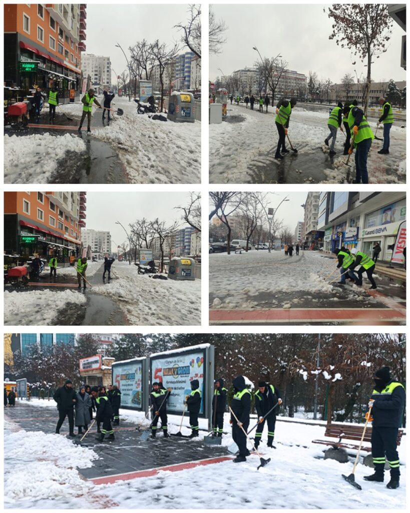 Belediye ekipleri, ana arterler başta olmak üzere cadde, sokak, bulvar ve kaldırımlarda kar küreme çalışmalarını aralıksız yürütüyor. Don ve buzlanma riskine karşı stratejik noktalarda tuzlama ve solüsyon uygulamaları yapılıyor.