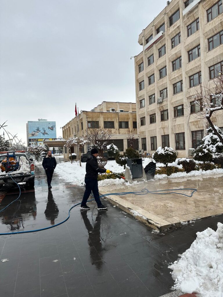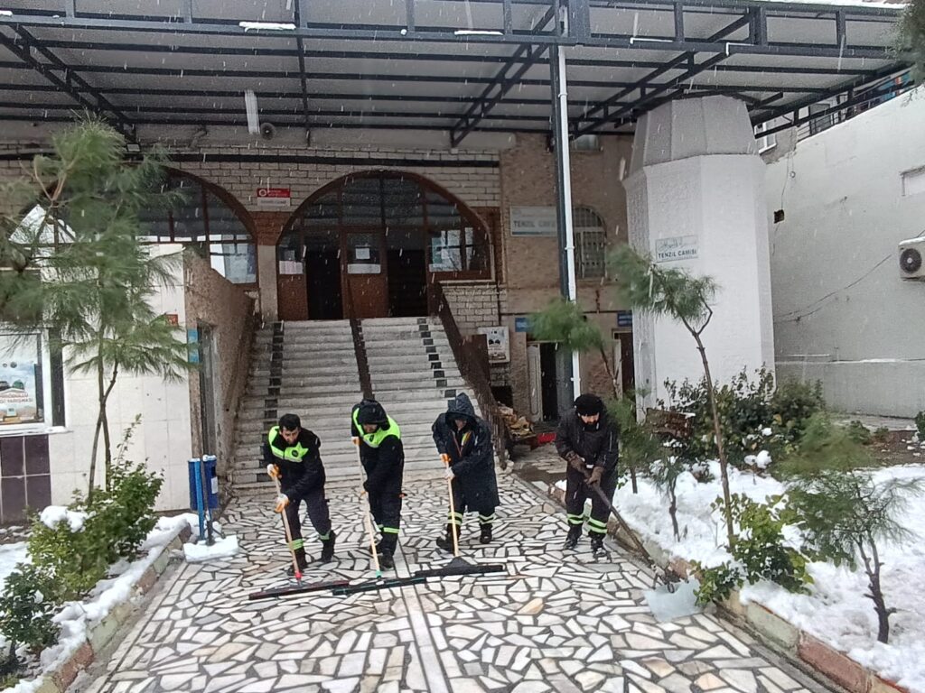 Yoğun kar yağışının ardından ibadethaneler ve kütüphane çevrelerinde karla mücadele çalışmaları yoğunlaştırıldı. Bu alanlarda yapılan tuzlama, kumlama ve solüsyon çalışmalarıyla yaya ve araç ulaşımının güvenli hale getirildiği belirtildi.