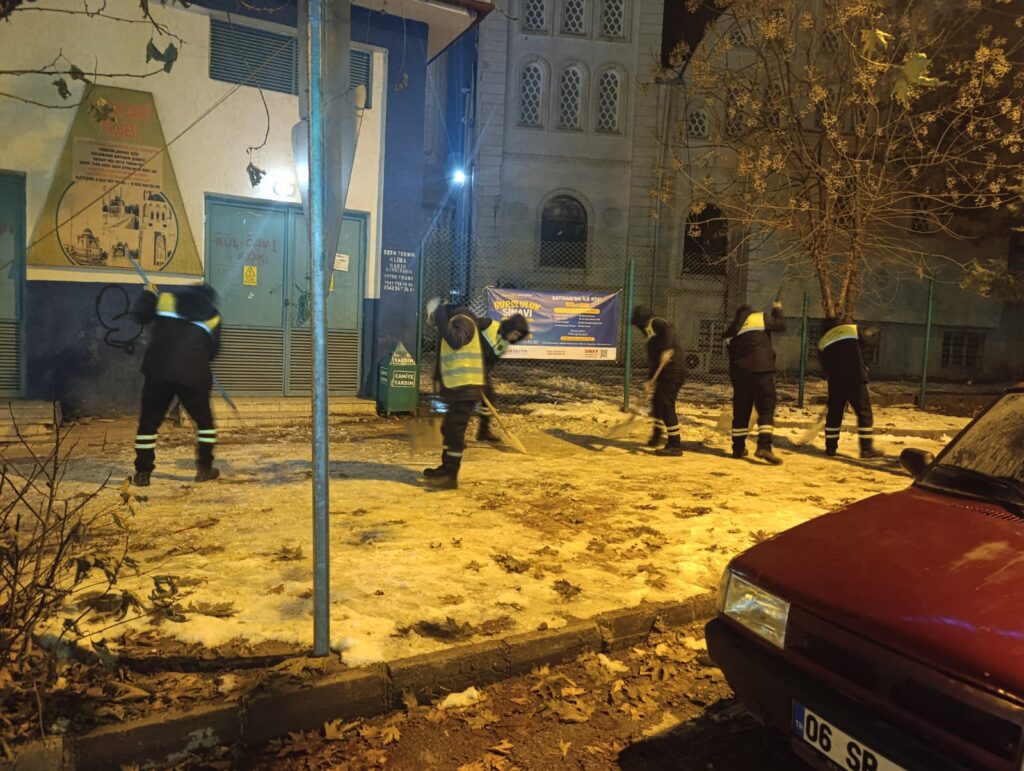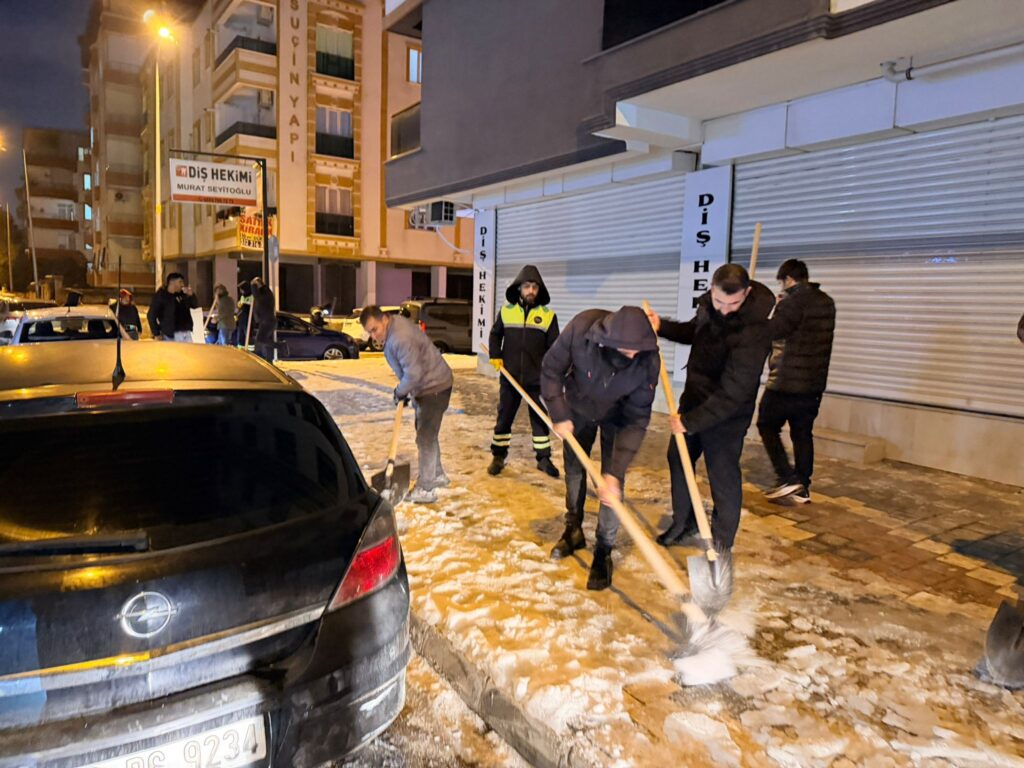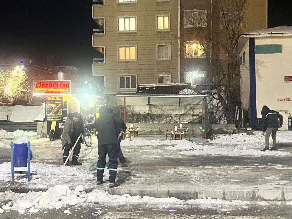 Ekipler, özellikle buzlanma riskine karşı hastane güzergâhları, kamu binaları çevresi ve yaya trafiğinin yoğun olduğu noktalarda çalışmalarını titizlikle sürdürüyor.
