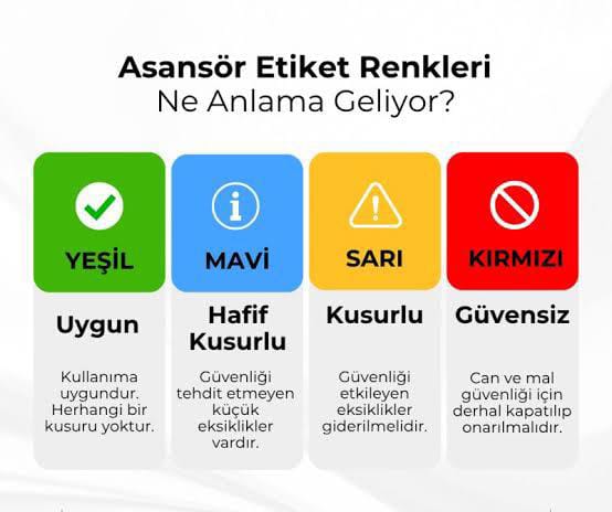Denetimler sonucunda asansörler; kırmızı (tehlikeli), sarı (güvensiz), mavi (hafif kusurlu) ve yeşil (güvenli) olmak üzere etiketlerle sınıflandırılıyor. 2025 yılı boyunca yapılan kontrollerde, kırmızı etiket almasına rağmen gerekli iyileştirmeleri yapmayan 362 asansör belediye ekiplerince mühürlenerek hizmet dışı bırakıldı.