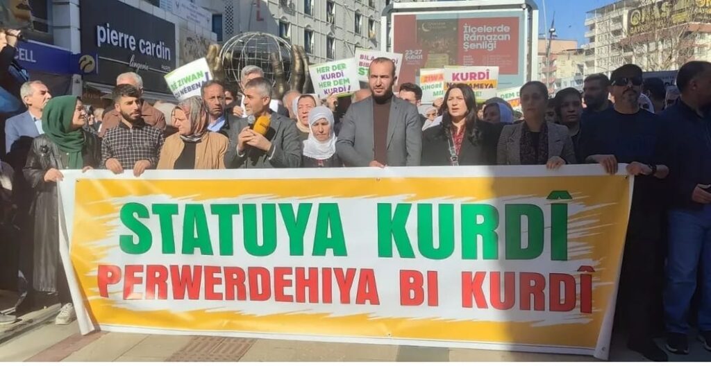 Açıklama, “Dilimiz onurumuzdur, dilimiz varlığımızdır” ve “Kürtçeye statü, Kürtçe eğitim” sloganlarıyla sona erdi.