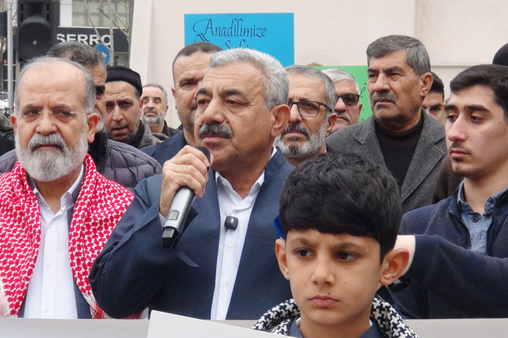 Gülistan Caddesi’nde konuşan İl Başkanı Davut Şahin, çocukların ana dillerini öğrenmesinin önemine vurgu yaptı. Kürtçenin evlerde konuşulması ve okullarda seçmeli ders olarak tercih edilmesi çağrısında bulundu.
